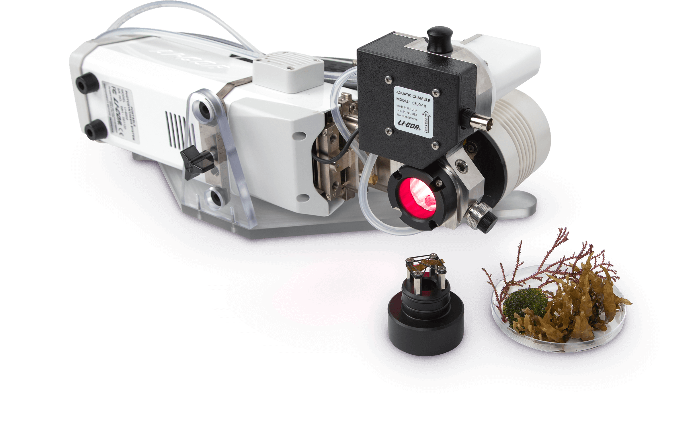 6800-18水生室用于测量来自藻类悬浮液,珊瑚,大型藻类和海草的稳态碳同化和叶绿素荧光,使用LI-6800便携式光合作用系统,这是陆地植物研究的光合作用系统。