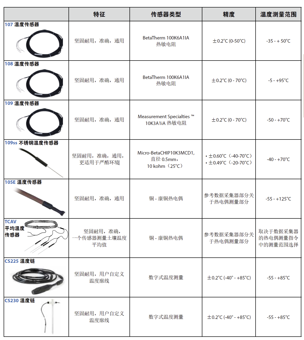 土壤温度传感器设计有热敏电阻、热电偶、热电偶线以及平均热电偶多种形式。传感器送入到数据采集器的D信号可以被转换成不同的测量单位,包括:摄氏度、华氏度以及开尔文K等。